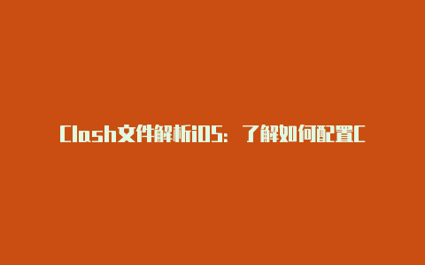 Clash文件解析iOS:了解如何配置Clash代理在iOS设备上