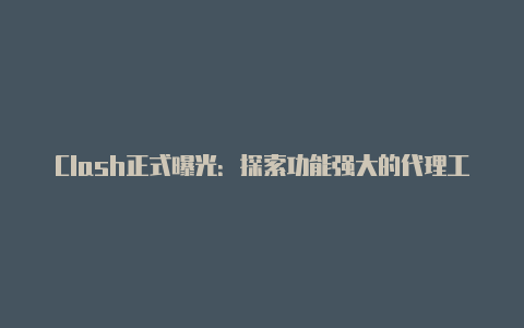 Clash是一款备受期待的代理工具,最近正式曝光并引起了广泛关注。作为一款功能强大的代理工具,Clash为用户提供了灵活的代理设置和高级流量控制功能。本文将介绍Clash的正式曝光情况,探索其强大功能和应用领域,以及对用户的意义。